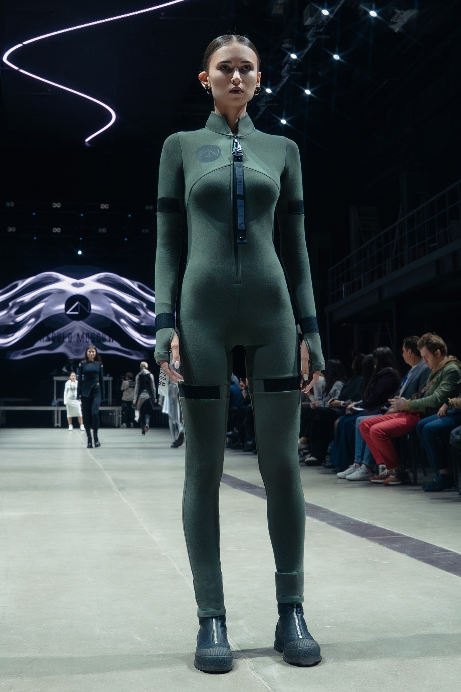 Эффектный и при этом тёплый комбинезон благородного цвета хаки выполнен из нежной, словно шёлк, плотной дышащей вискозы, контрастные вставки из эко-замши. На спинке, по бокам и на плечах декоративные вставки из искусственной кожи, комбинированный воротник из вискозы и эко кожи, приталенный силуэт, водонепроницаемая молния.