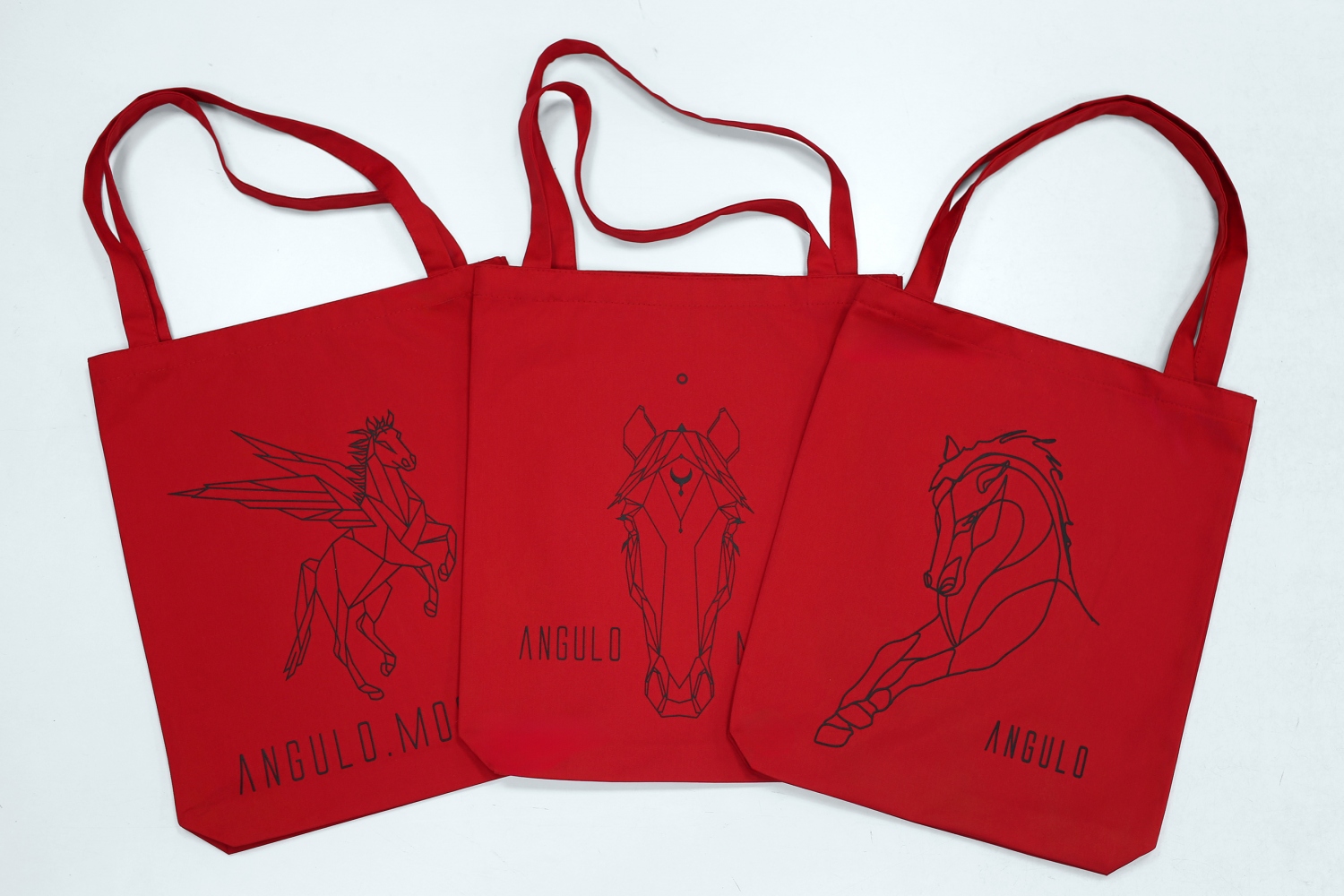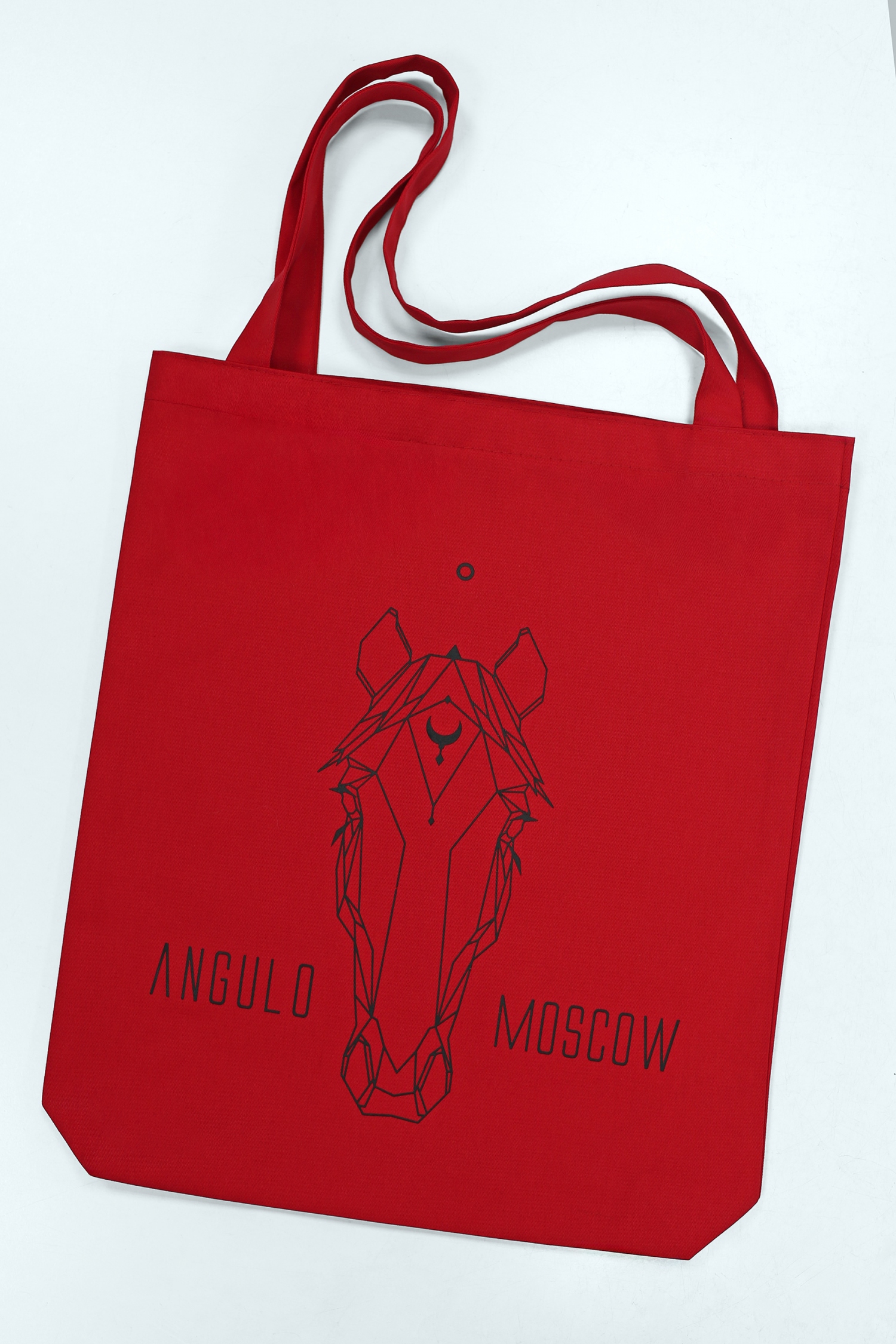 Плотная красная холщовая сумка с фирменным логотипом.