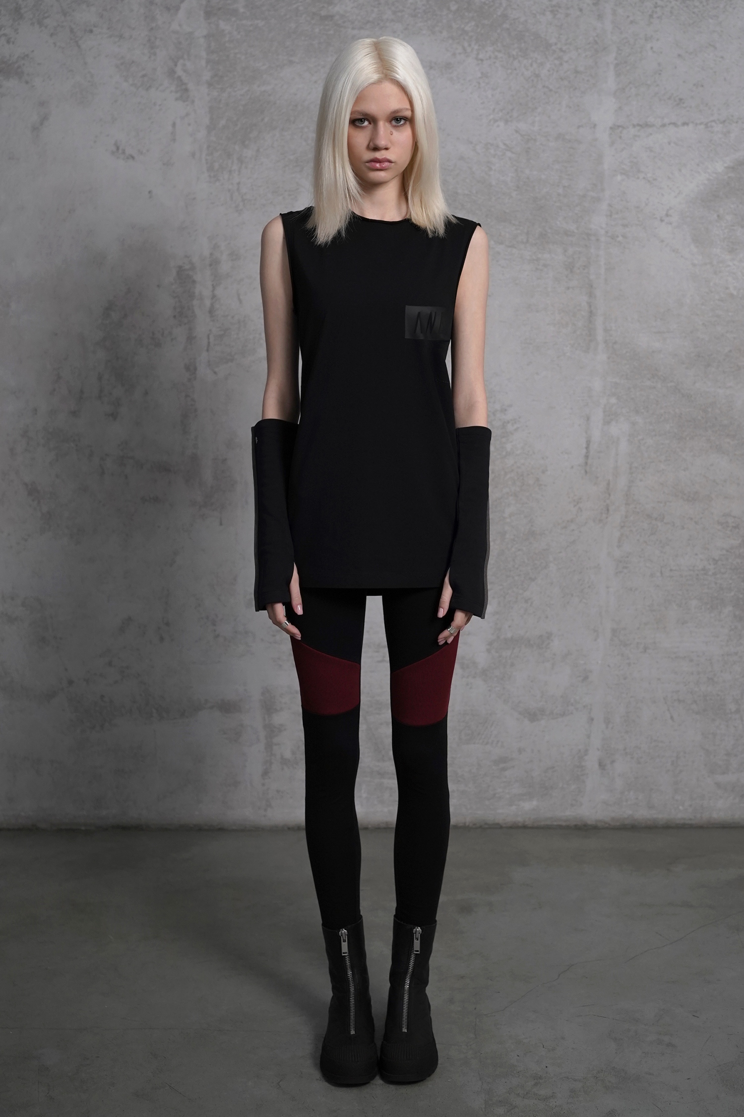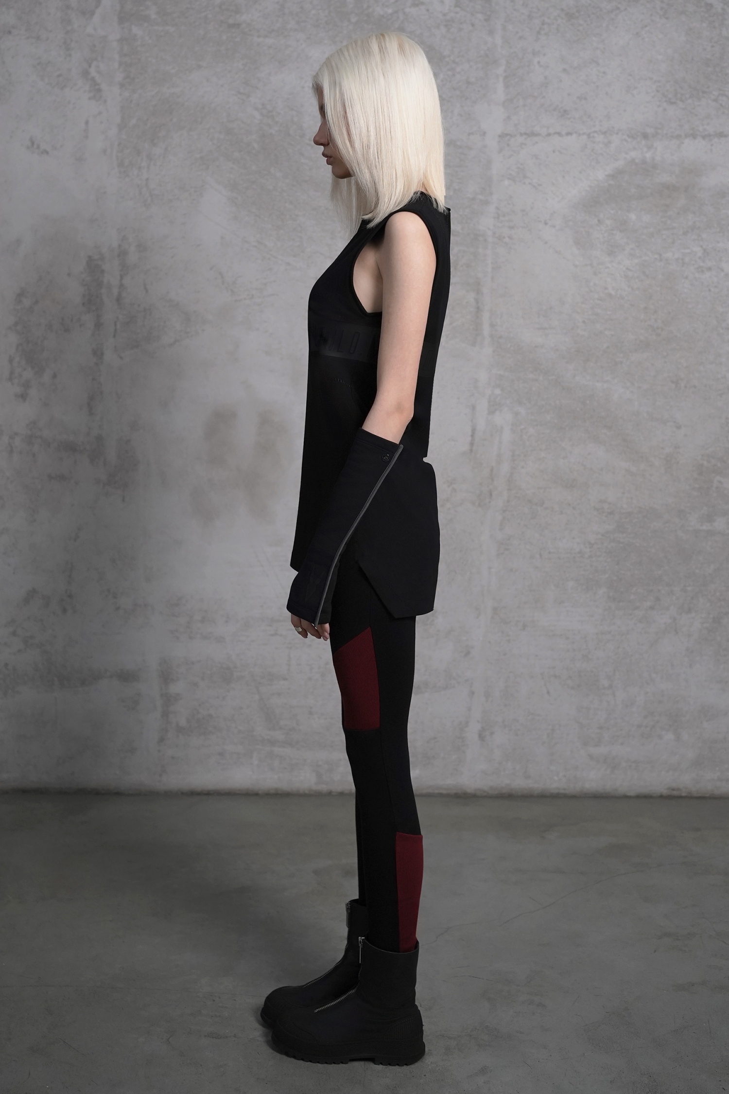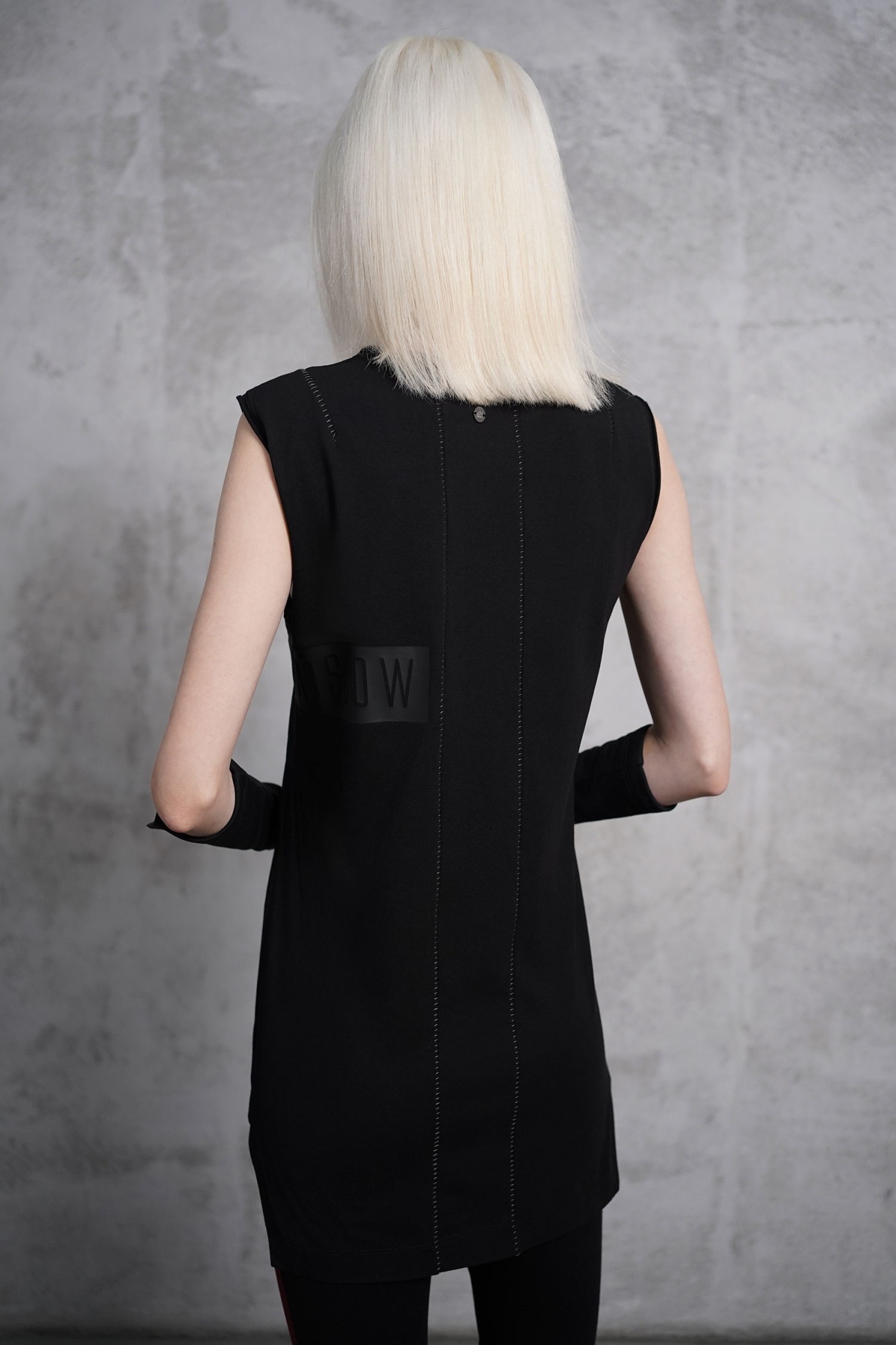 Безрукавка прямого кроя, удлиненная спинка и полочка, декоративные швы цвета хаки.