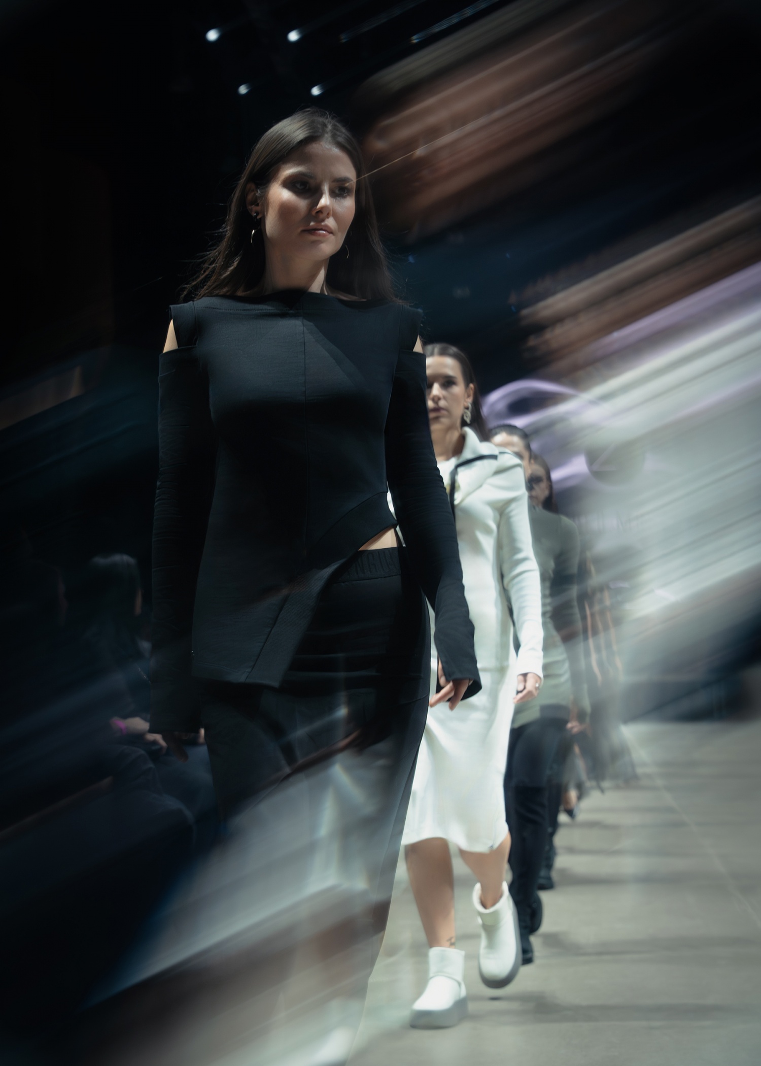 Завершенность модели придает оригинальная обработка края каждого рукава с разрезом у запястья.